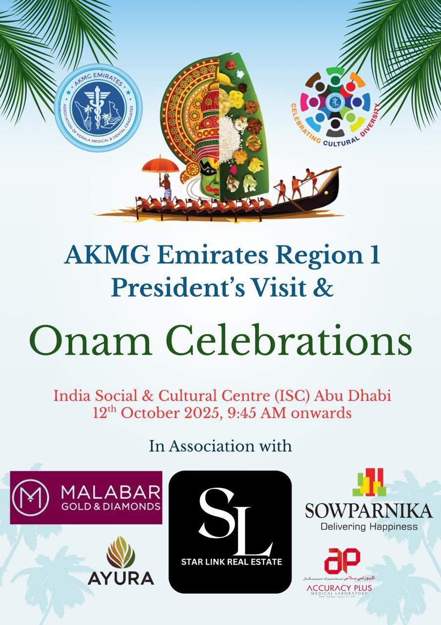 AKMG Emirates celebrated Onam 2025 with grandeur and enthusiasm across all seven regions. The festivities reflected the true spirit of unity and togetherness, featuring a wide array of cultural performances, traditional games, and community gatherings.